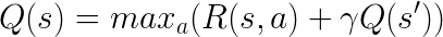 A fenti képletet Bellman egyenletnek hívjuk és valójában nem túl bonyolult. Az s jelenti az állapotot, az a az akciót. Az R(s,a) az adott állapotból adott akcióval elérhető jutalom (reward), a Q(s) pedig az adott állapotból elérhető legnagyobb összes jutalom. Hogy megkapjuk a Q értékét, az aktuális akcióval elérhető jutalomhoz (R(s,a)) adjuk hozzá az akció által előállt következő állapot (s’) várható Q értékét megszorozva egy gamma konstanssal, ami azt jelképezi, hogy a jövőben várható jutalom mennyit ér nekünk a jelenben. Tehát fogjuk az akcióval nyerhető jutalmat, hozzáadjuk a jövőben elvárható jutalom “diszkontált” értékét, és azt az akciót választjuk, ahol ez a legnagyobb. Dióhéjban igazából ennyi a Q-learning lényege. Attól lesz belőle Deep Q-learning, hogy a Q érték megtippelésére neurális hálót használunk.