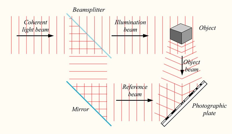 The essence of hologram technology is that, instead of capturing the intensity of light beams on a photographic plate, it records their phase. While this process loses color information, in return, if we illuminate it with the same laser used to make the recording, the light beams emerge in the exact phase as they would from the real object. That’s why we perceive the hologram as three-dimensional. In Jepsen’s patent, the display plays the same role as the photographic plate in a hologram, but while the photographic plate is static, this display is dynamic. Unlike traditional holograms, these holograms are incomprehensible to the human eye. However, they offer the possibility to focus light through human tissue. It’s akin to placing a lens in front of a blurry image to obtain a clear, focused picture, except here, the lens is made of human flesh and bones.