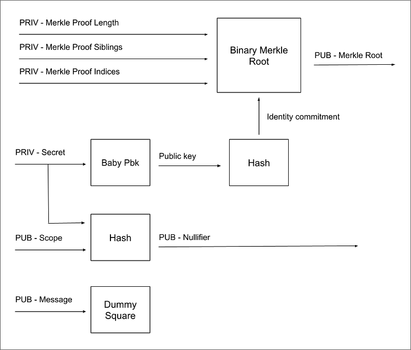 It is possible for this commitment to be not just a hash generated from the public key, but a hash of the public key and a Merkle root. The Merkle root is the root of a binary tree that contains the desired data in key-value format. After the user identifies themselves with a zero-knowledge proof, they can further prove the authenticity of any of their personal data using a Merkle proof. With this solution, in addition to citizenship, other personal information such as date of birth or residence can be verified, enabling local elections as well.